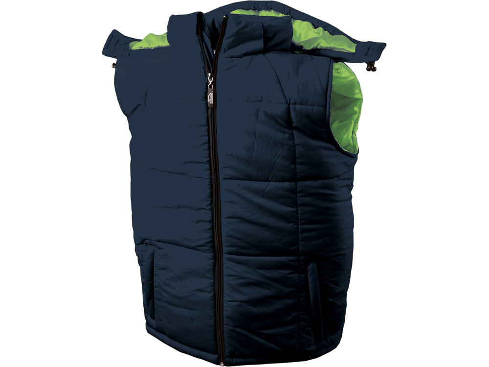 Теплый жилет «Vigour» можно носить в любую погоду. Удобные карманы на молнии для надежного хранения мелочей и большой внутренний карман для документов или денег, шнур с фиксаторами по низу изделия. Задняя часть жилета длиннее передней. Также достоинством этого жилета является съемный капюшон.