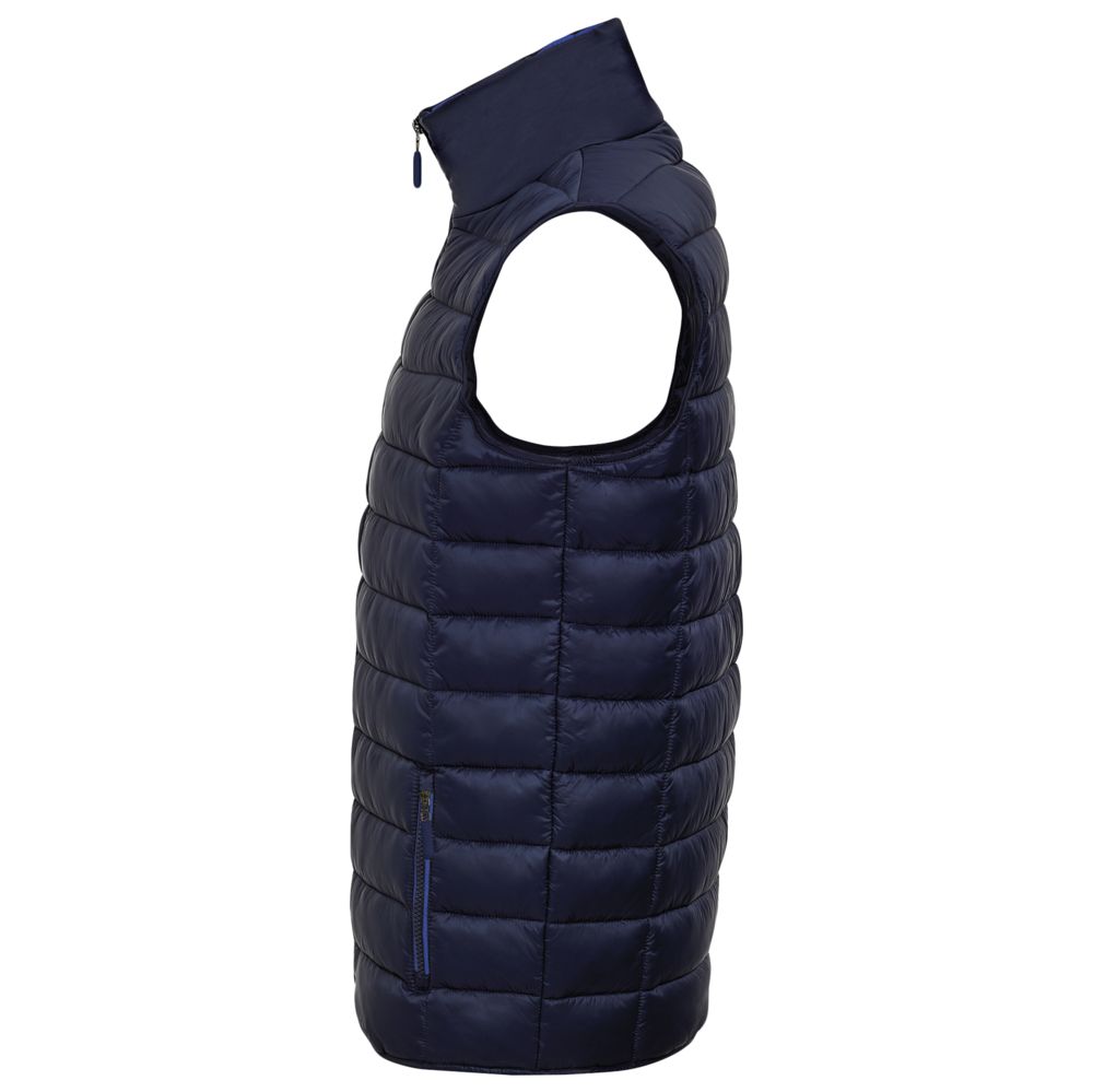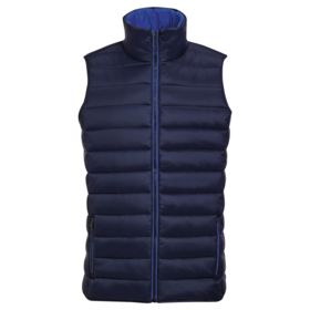 Приталенная модель, воротник-стойка. Застежка-молния в цвет жилета, два боковых кармана на молнии в цвет подкладки, окантовка по низу жилета тон в тон.