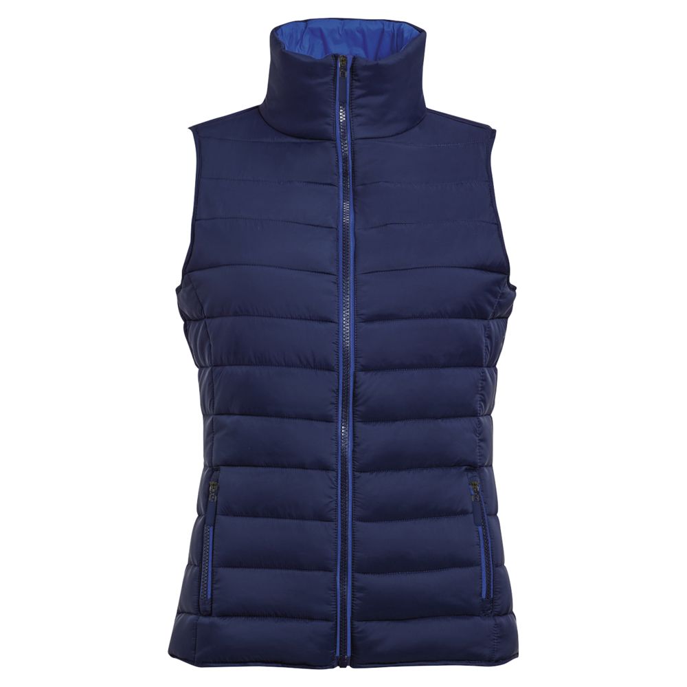 Приталенная модель, воротник-стойка. Застежка-молния в цвет жилета, два боковых кармана на молнии в цвет подкладки, окантовка по низу жилета тон в тон.