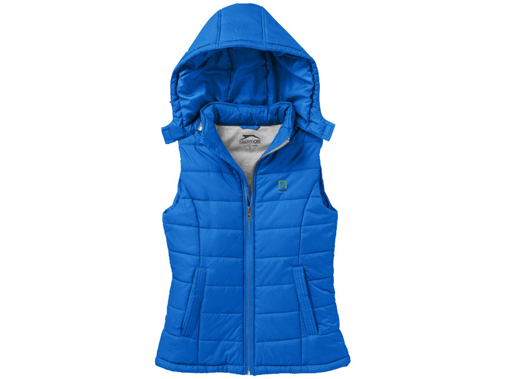 Женский жилет Mixed Doubles. Прилегающий покрой. Отстегивающийся капюшон. Эластичные завязки со стопперами внизу. Карманы для рук. Петелька для застежки. Внутренний карман. Контрастного цвета одинарная подкладка. Ткань с ромбовидным рисунком, 100% нейлон с белым AC покрытием.