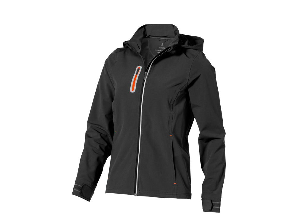 Женская куртка софтшел Howson. Стандартный покрой. Отстегивающийся капюшон на шнурках со стопперами. Спрятанные карманы для рук на молнии. Нагрудный карман со светоотражающей деталью. Застежка-молния контрастного цвета на нагрудном кармане. Регулируемые манжеты на липучках. 8000/3000 водонепроницаемый, дышащий. Отражающий лого сзади. Полностью проклеенные швы. Ткань из 90% полиэстера и 10% эластана, склеенного с сетчатым материалом из 100% полиэстера. 160 г/м².