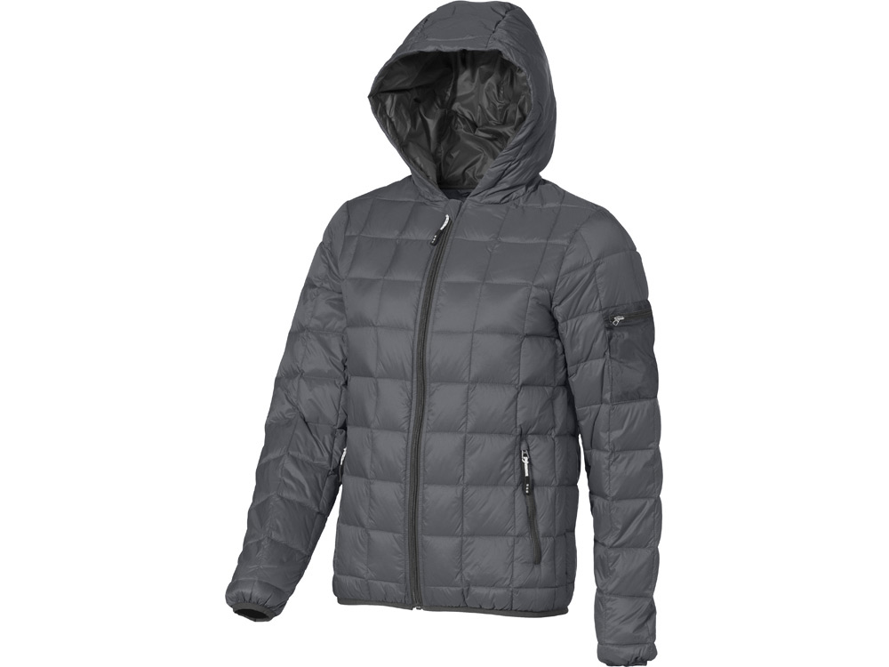 Женская легкая пуховая куртка Kanata. Стандартный покрой. Ткань не пропускает пух. Карманы для рук на молнии. Карман на рукаве на молнии можно использовать для нанесения. Резинка на манжетах и внизу куртки. Ремешки на собачку (второй комплект в цвете антрацит). Внутренний противоветровой клапан и защита подбородка. Ткань дышащая, ветронепроницаемая и влагоотталкивающая. Отражающий лого сзади. Легкий пуховик. Ткань из 100% нейлона с матовым и блестящим водоотталкивающим покрытием, 20D. 80% пух и 20% перо. 115 г/м².