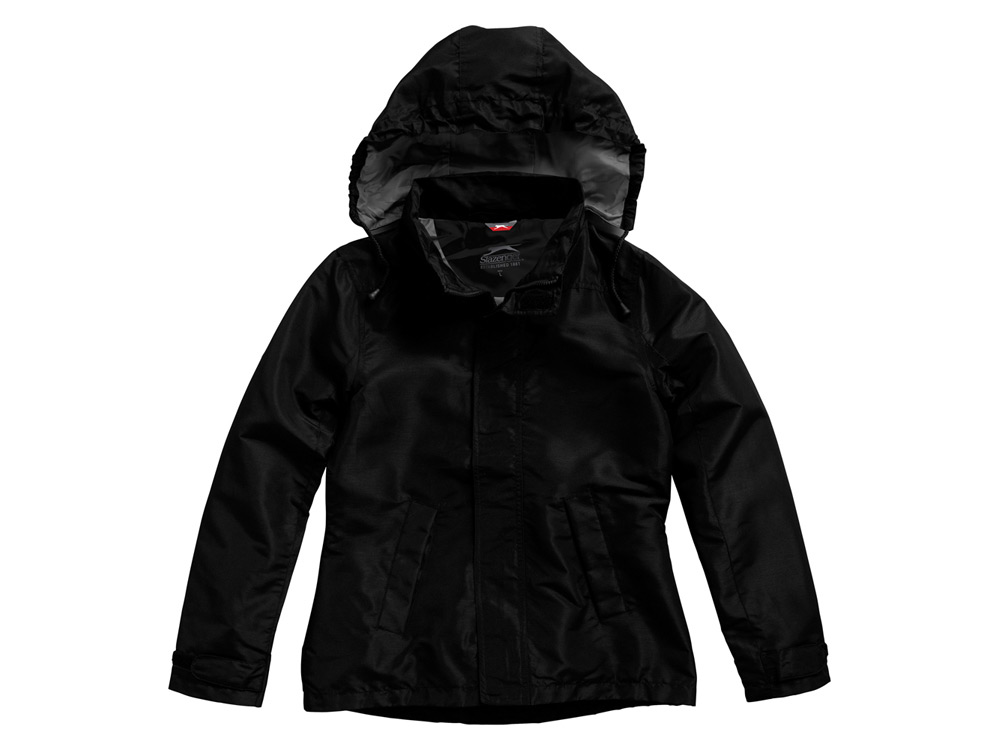 Куртка Top Spin. Прилегающий покрой. Влагоотталкивающая. Капюшон на завязках со стопперами, прячется в воротник. Два передних кармана. Регулируемые манжеты на липучках. Полумесяц. Петелька для застежки. Внутренние карманы. Принт Slazenger сзади. Ткань Taslan из 100% полиэстера с покрытием из АС. Подкладка из 100% полиэстера тафты.