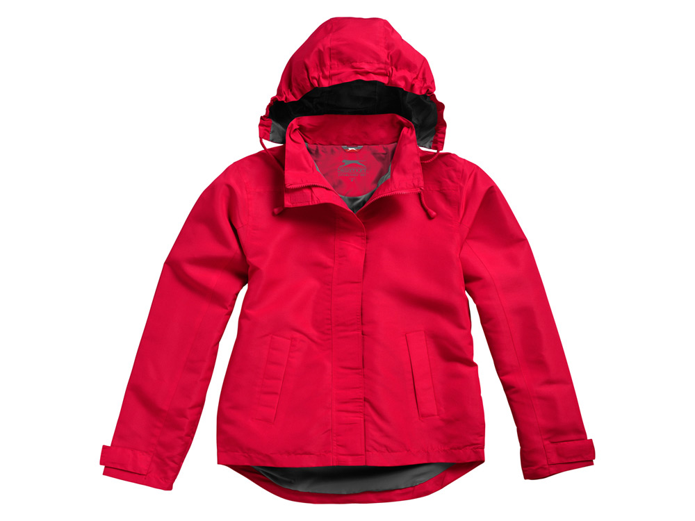 Женская куртка Top Spin. Прилегающий покрой. Влагоотталкивающая. Капюшон на завязках со стопперами, прячется в воротник. Два передних кармана. Регулируемые манжеты на липучках. Полумесяц. Петелька для застежки. Внутренние карманы. Принт Slazenger сзади. Ткань Taslan из 100% полиэстера с покрытием из АС. Подкладка из 100% полиэстера тафты.