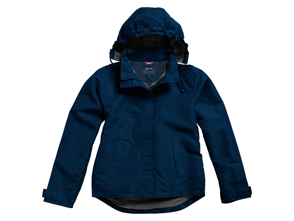 Женская куртка Top Spin. Прилегающий покрой. Влагоотталкивающая. Капюшон на завязках со стопперами, прячется в воротник. Два передних кармана. Регулируемые манжеты на липучках. Полумесяц. Петелька для застежки. Внутренние карманы. Принт Slazenger сзади. Ткань Taslan из 100% полиэстера с покрытием из АС. Подкладка из 100% полиэстера тафты.