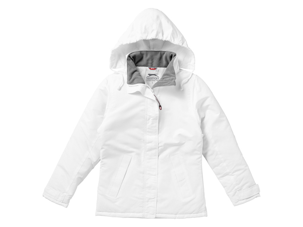 Женская утепленная куртка Under Spin. Прилегающий покрой. Влагоотталкивающая. Капюшон на завязках со стопперами, прячется в воротник. Два передних кармана на липучке. Регулируемые манжеты на липучках. Флисовая подкладка внутри воротника. Полумесяц. Петелька для застежки. Внутренний карман и карман для мобильного. Принт Slazenger сзади. Ткань Taslon из 100% полиэстера с покрытием из AC. Подкладка из 100% полиэстеровой стеганой тафты. Подкладка из 100% полиэстера.