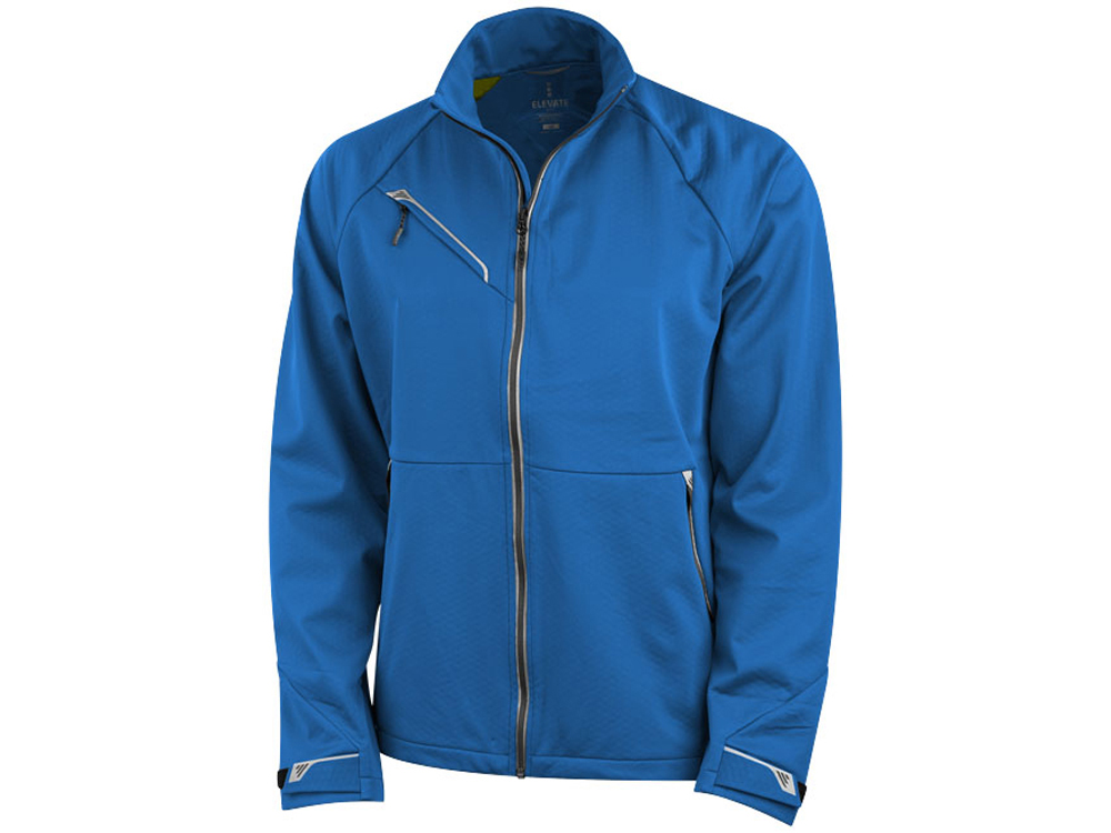 Куртка софтшел Kaputar. Универсальный покрой. Детали трансфера. Обратная молния по центру спереди с серебряной отражающей лентой. Эластичные завязки со стопперами внизу. Внутреннее отверстие для медиапроводов. Регулируемые ламинированные застежки на манжетах на липучке. Эргономичные рукава. Скрытый карман вверху на обратной молнии. Двухластичный трикотаж из 100% полиэстера, склеенного со 100% полиэстеровым рельефным флисом с водонепроницаемой дышащей мембраной и водоотталкивающей отделкой. 240 г/м2.