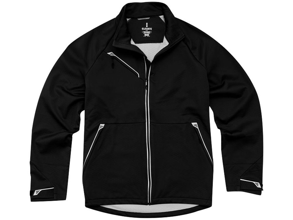 Куртка софтшел Kaputar. Универсальный покрой. Детали трансфера. Обратная молния по центру спереди с серебряной отражающей лентой. Эластичные завязки со стопперами внизу. Внутреннее отверстие для медиапроводов. Регулируемые ламинированные застежки на манжетах на липучке. Эргономичные рукава. Скрытый карман вверху на обратной молнии. Двухластичный трикотаж из 100% полиэстера, склеенного со 100% полиэстеровым рельефным флисом с водонепроницаемой дышащей мембраной и водоотталкивающей отделкой. 240 г/м2.