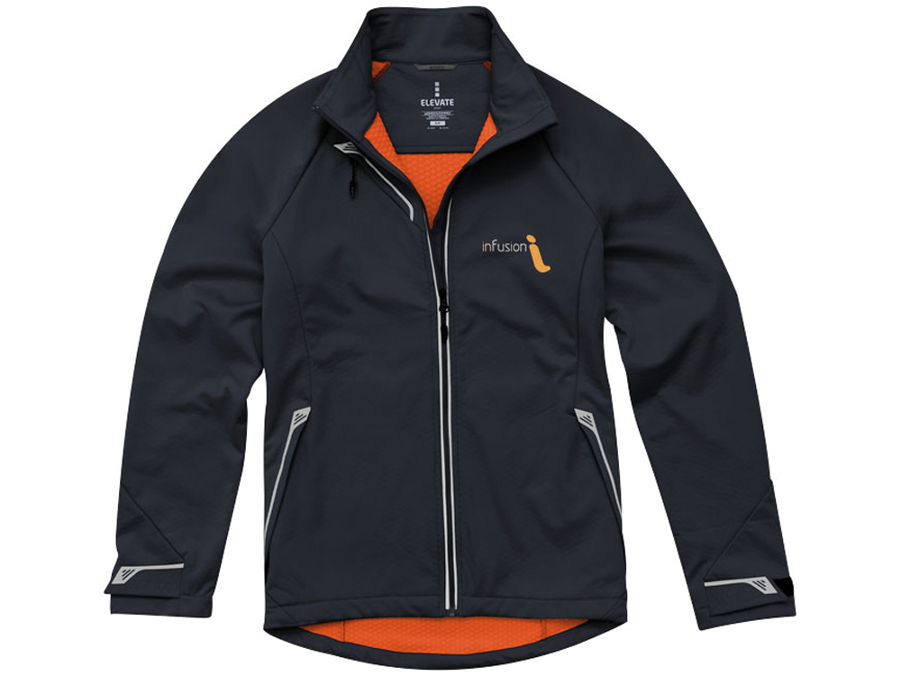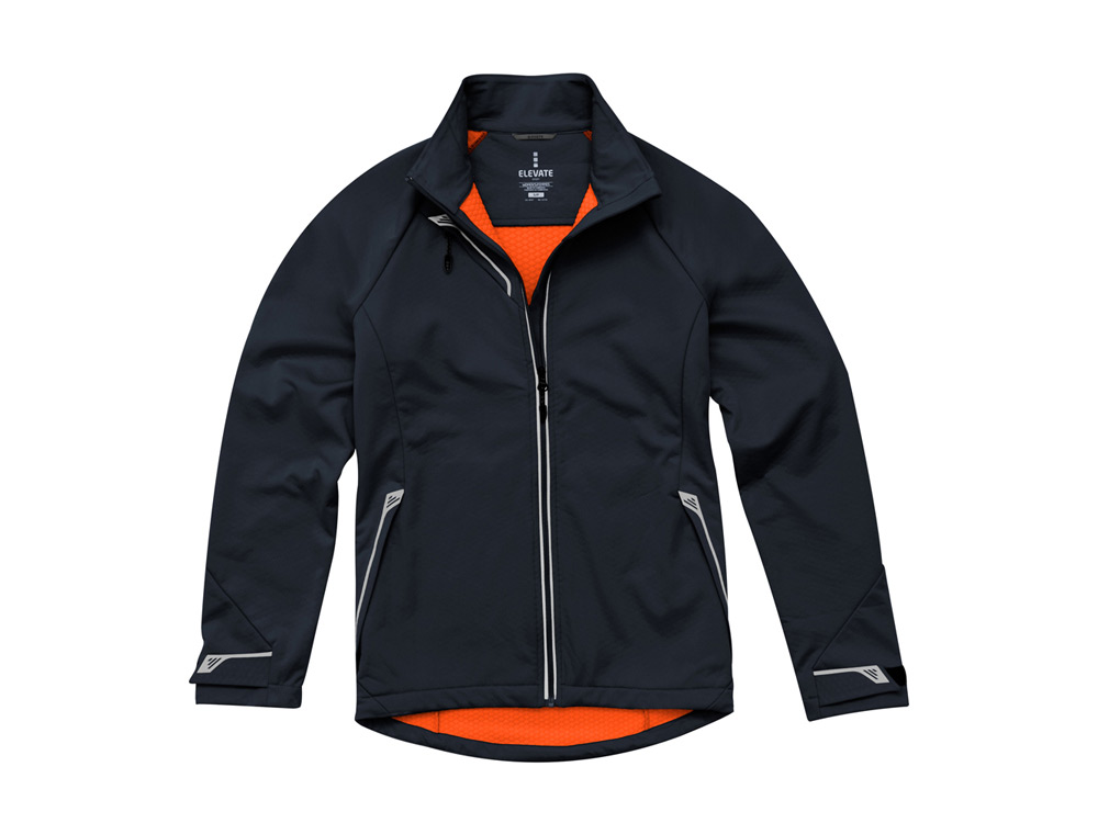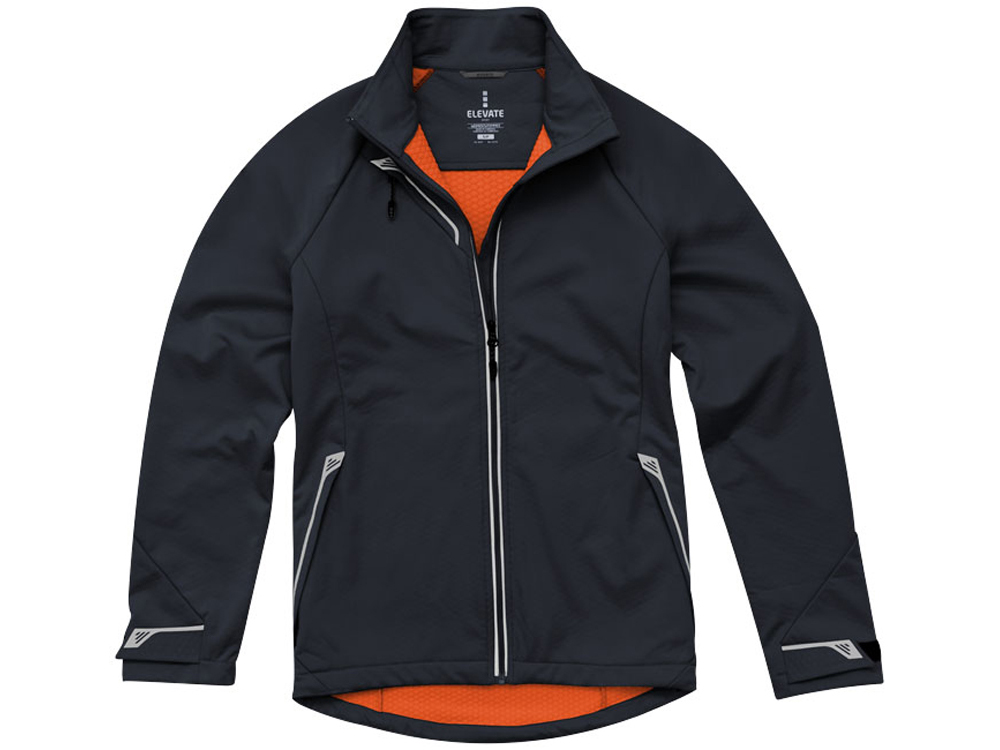 Женская куртка софтшел Kaputar. Универсальный покрой. Детали трансфера. Обратная молния по центру спереди с серебряной отражающей лентой. Эластичные завязки со стопперами внизу. Внутреннее отверстие для медиапроводов. Регулируемые ламинированные застежки на манжетах на липучке. Эргономичные рукава. Скрытый карман вверху на обратной молнии. Двухластичный трикотаж из 100% полиэстера, склеенного со 100% полиэстеровым рельефным флисом с водонепроницаемой дышащей мембраной и водоотталкивающей отделкой. 240 г/м2.
