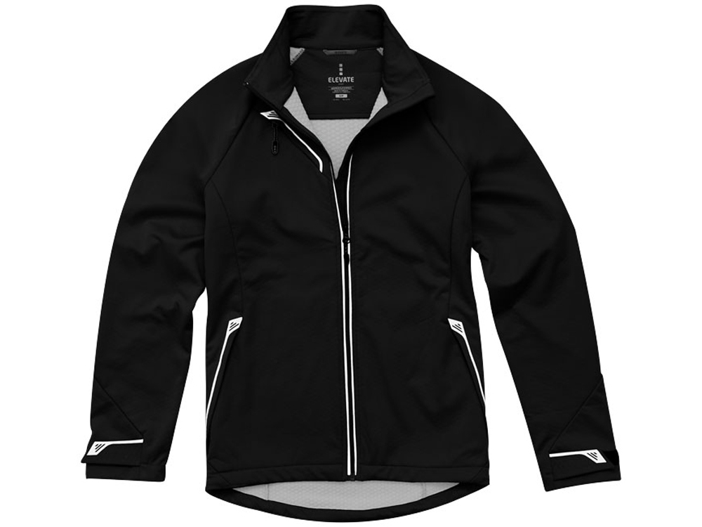 Женская куртка софтшел Kaputar. Универсальный покрой. Детали трансфера. Обратная молния по центру спереди с серебряной отражающей лентой. Эластичные завязки со стопперами внизу. Внутреннее отверстие для медиапроводов. Регулируемые ламинированные застежки на манжетах на липучке. Эргономичные рукава. Скрытый карман вверху на обратной молнии. Двухластичный трикотаж из 100% полиэстера, склеенного со 100% полиэстеровым рельефным флисом с водонепроницаемой дышащей мембраной и водоотталкивающей отделкой. 240 г/м2.