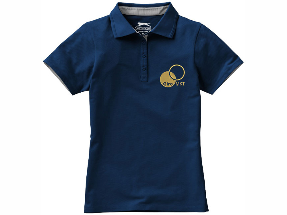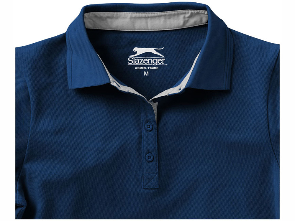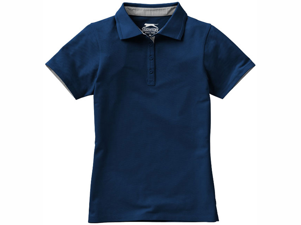 Женская рубашка поло с короткими рукавами Hacker. Стандартный покрой. Воротник 1х1. Пуговицы с гравировкой. Серый поплин внутри воротника - стойки и на манжетах. Боковые разрезы. Принт Slazenger на шве слева. Пике, 100% хлопок. 220 г/м².