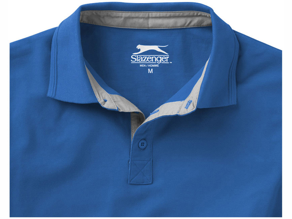 Рубашка поло с короткими рукавами Hacker. Стандартный покрой. Воротник 1х1. Пуговицы с гравировкой. Серый поплин внутри воротника - стойки и на манжетах. Боковые разрезы. Принт Slazenger на шве слева. Пике, 100% хлопок. 220 г/м².