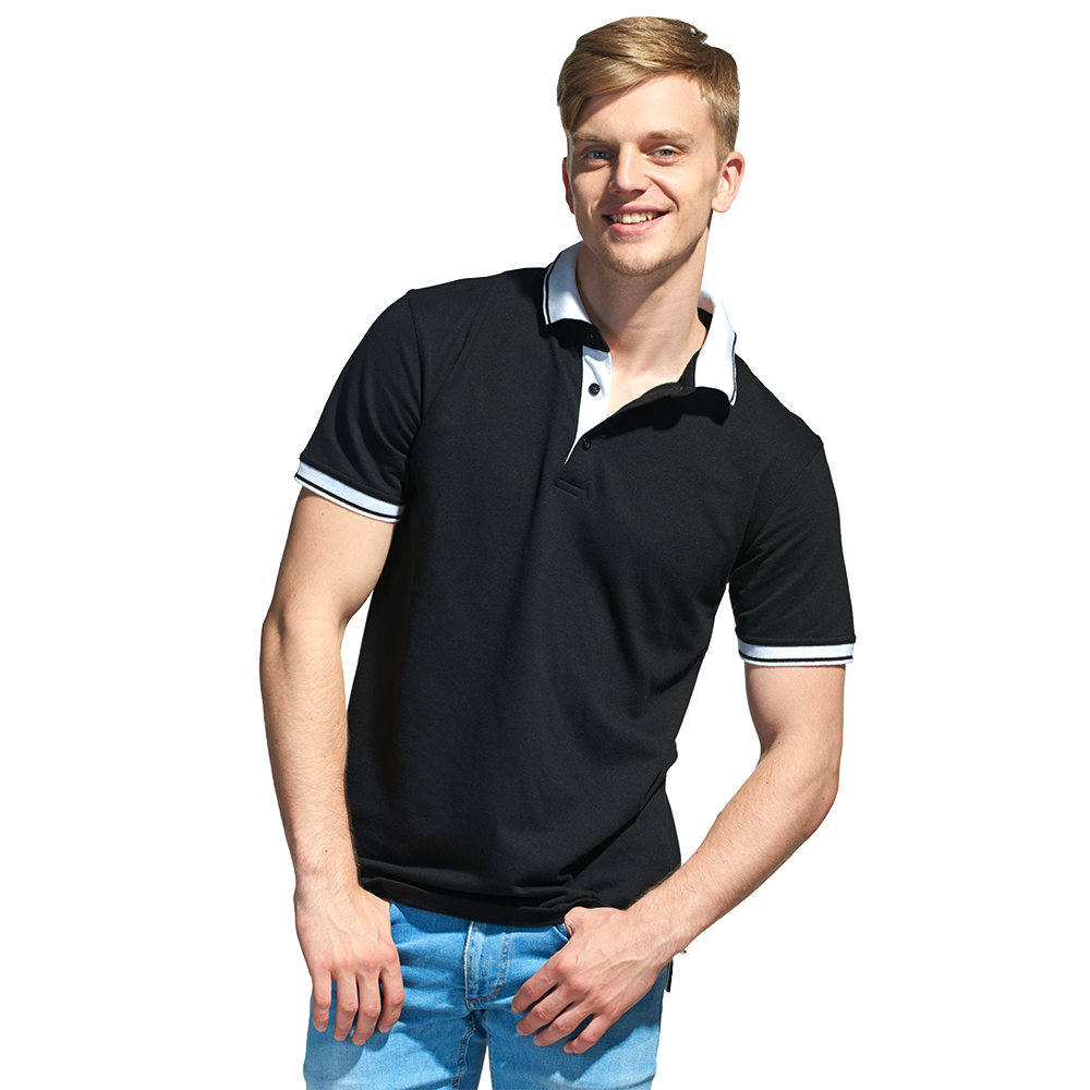 мужская рубашка-поло контрастные детали и отделка ворота и манжет удлиненная спинка материал с обработкой «anti-pill» (против катышек)