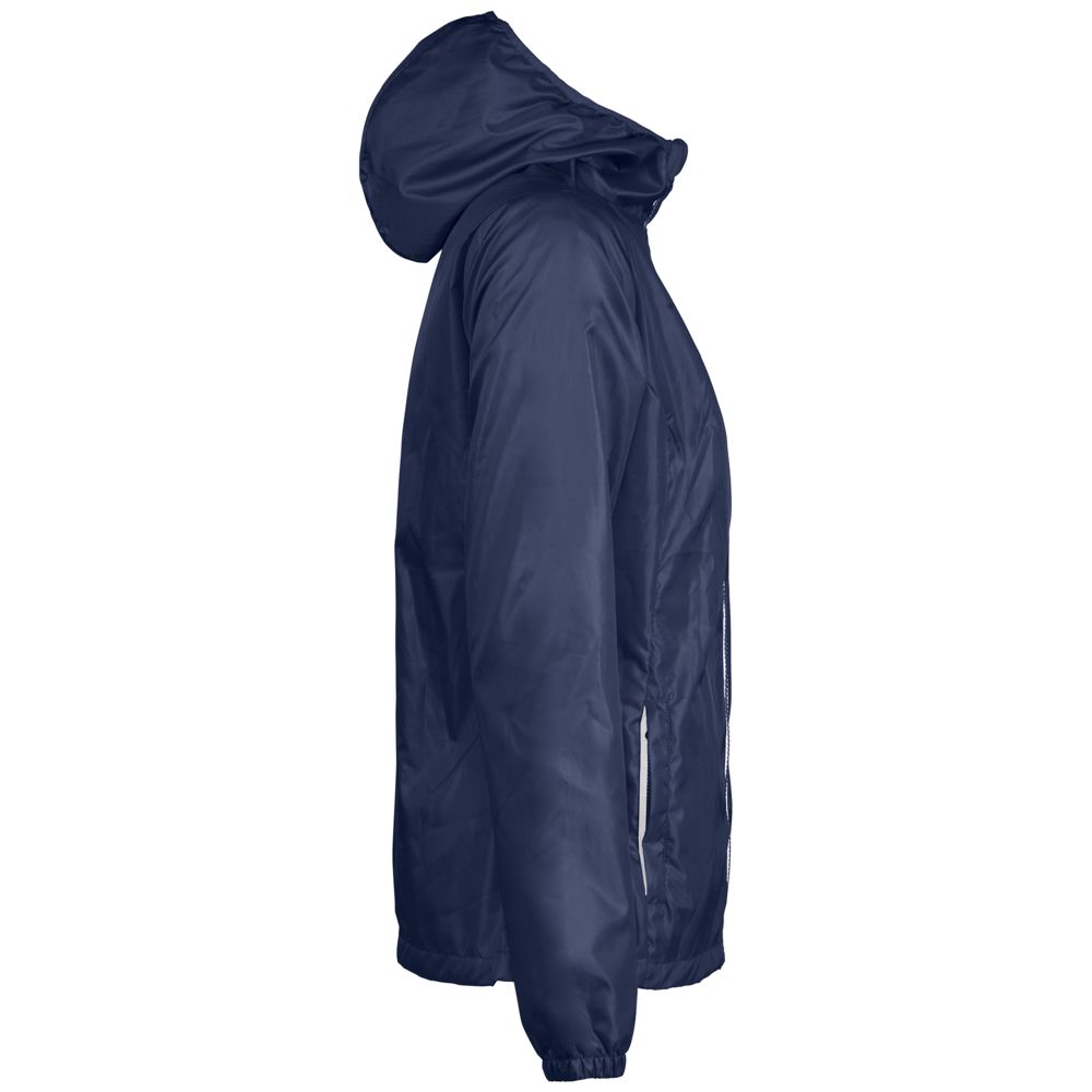 Ветровка с капюшоном из ветро- и влагоустойчивого полиэстера. Передние карманы на молнии, утепленная подкладка, манжеты и капюшон на резинке. Замки-молнии YKK.