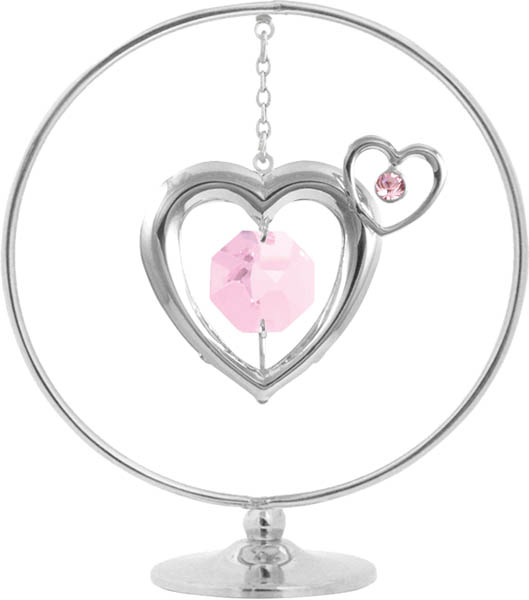 Миниатюра Crystocraft "Два Сердца" серебристого цвета с розовыми кристаллами, сталь
