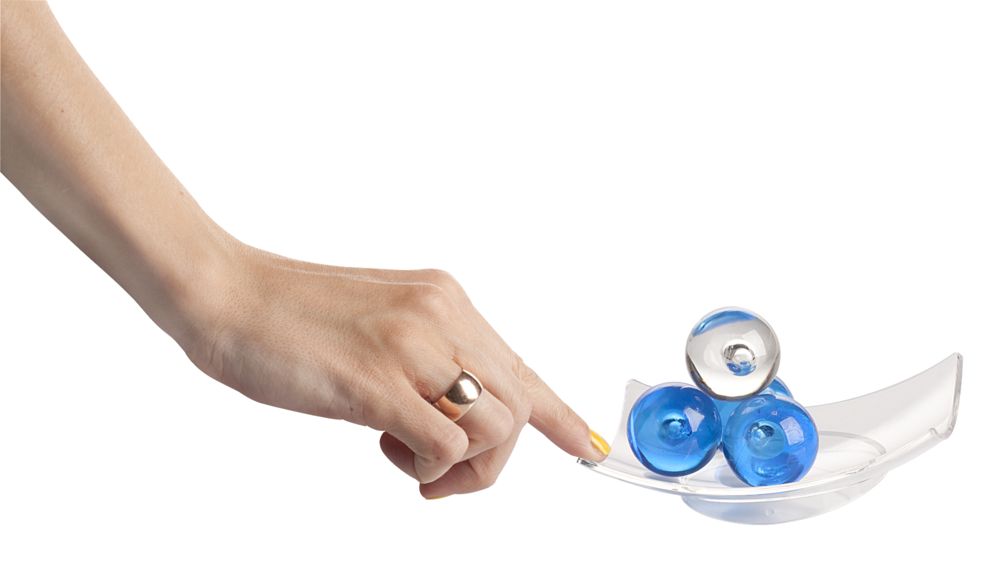 Благодаря специальной форме подставки пирамида из четырех шариков плавно перекатывается по ней, сохраняя устойчивость.
