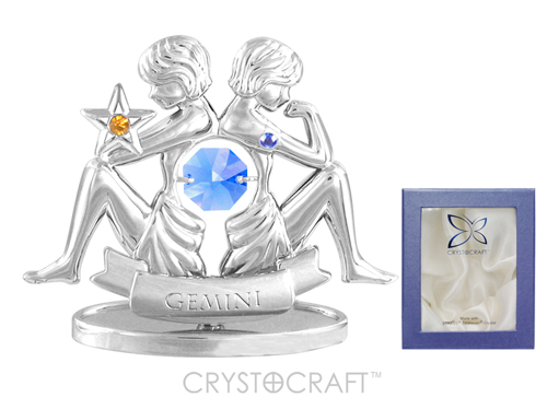 Миниатюра Crystocraft "Знаки Зодиака — Близнецы" серебристого цвета с голубыми кристаллами, сталь