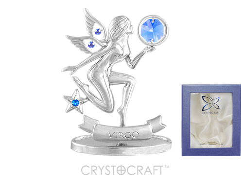 Миниатюра Crystocraft "Знаки Зодиака — Дева" серебристого цвета с голубыми кристаллами, сталь, 6х3х8,5см