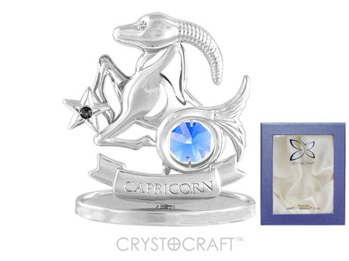 Миниатюра Crystocraft "Знаки Зодиака — Козерог" серебристого цвета с голубыми кристаллами, сталь, 6х3х7см