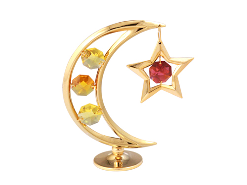 Миниатюра Crystocraft "Полумесяц" золотистого цвета с цветными кристаллами, сталь, 7,5х3х10см