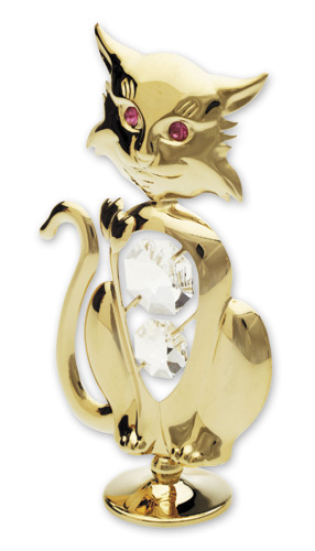 Миниатюра Crystocraft "Кошка" золотистого цвета с цветными кристаллами, сталь