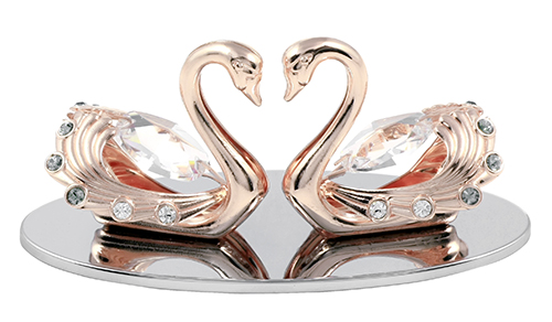 Миниатюра Crystocraft "Лебеди" розово-золотистого цвета с бесцветными кристаллами, сталь