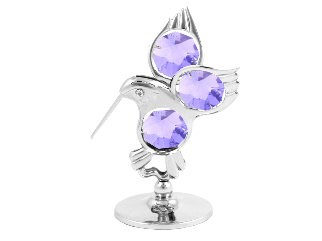 Миниатюра Crystocraft "Колибри" серебристого цвета с сиреневыми кристаллами, сталь
