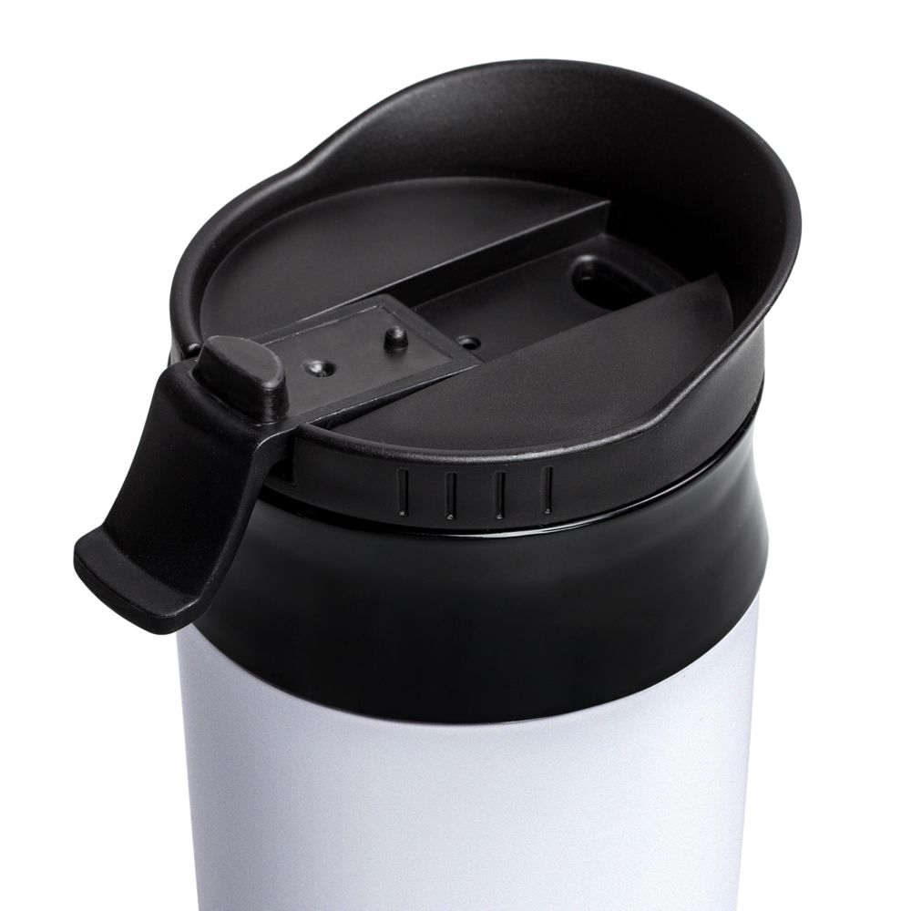 Двухслойная конструкция из пластика внутри и стали снаружи. Герметичная завинчивающаяся крышка с откидным клапаном для питья.