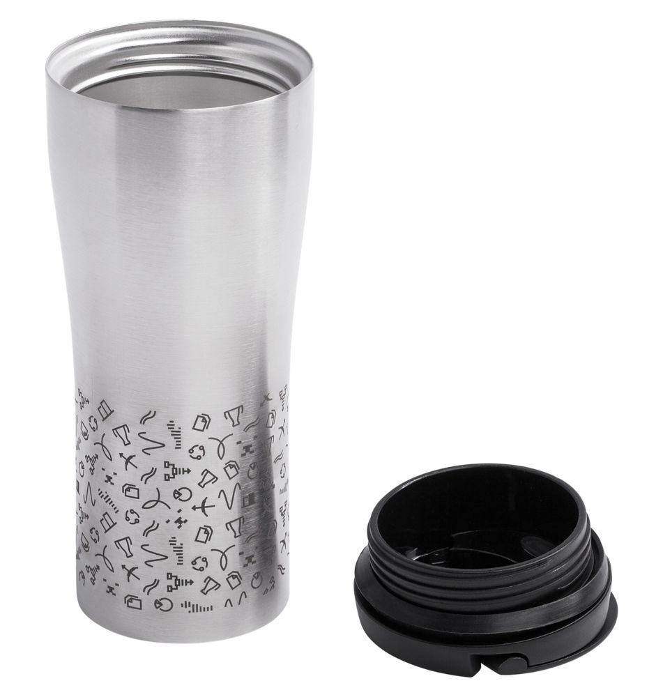 Двухслойная вакуумная конструкция из нержавеющей стали внутри и снаружи. Герметичная завинчивающаяся крышка с откидным клапаном для питья.