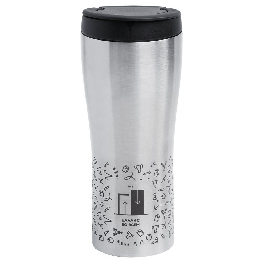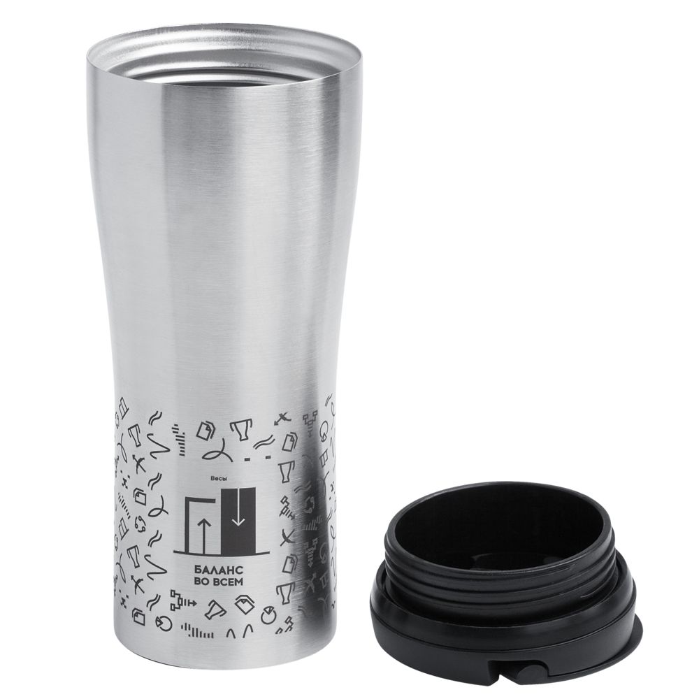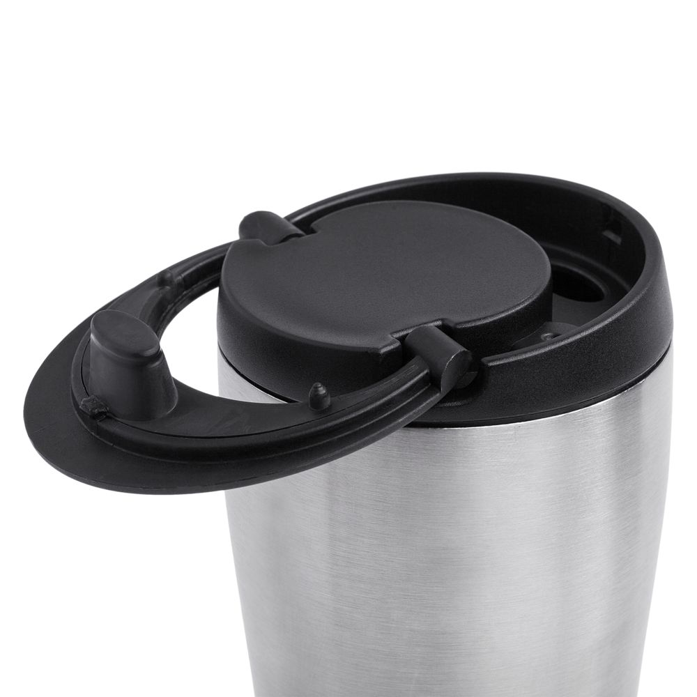 Двухслойная вакуумная конструкция из нержавеющей стали внутри и снаружи. Герметичная завинчивающаяся крышка с откидным клапаном для питья.