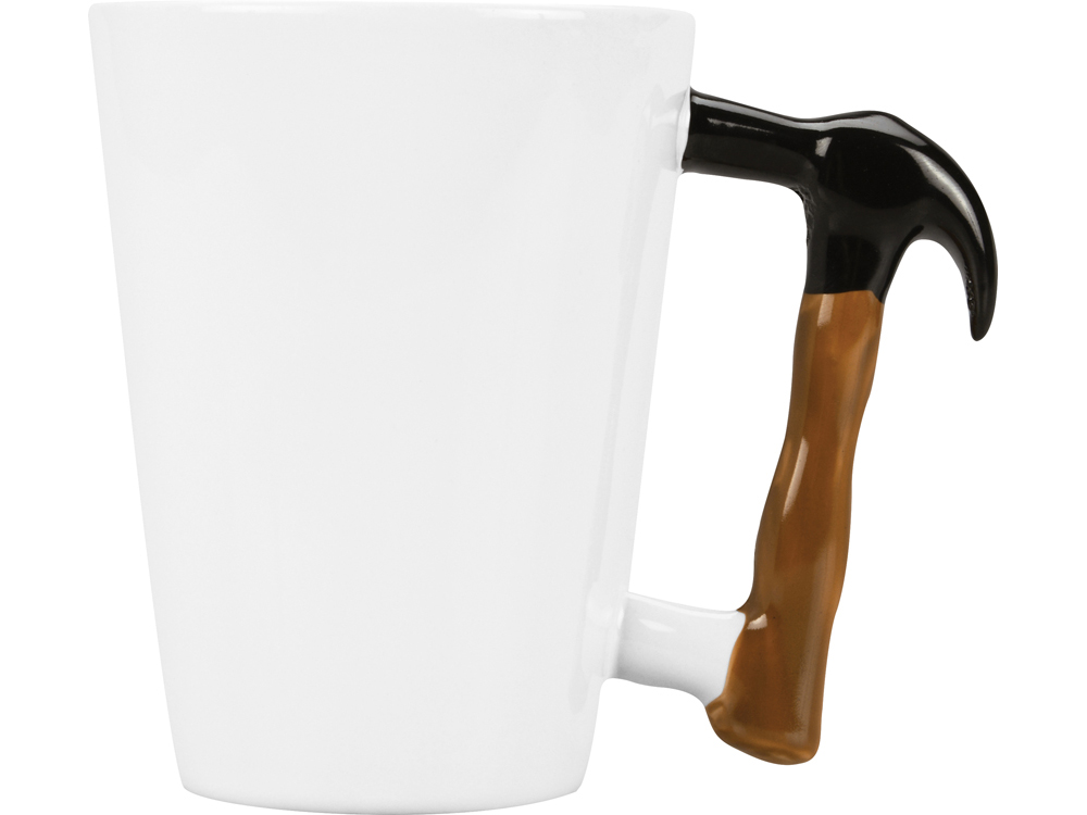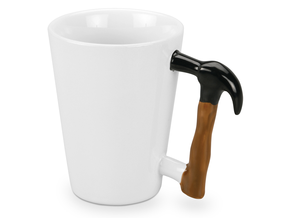 Оригинальная керамическая кружка с ручкой в форме молотка подчеркнет специфику деятельности строительной организации. Превосходный подарок для сотрудников компании.