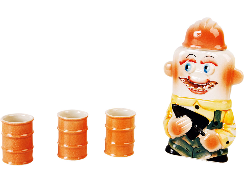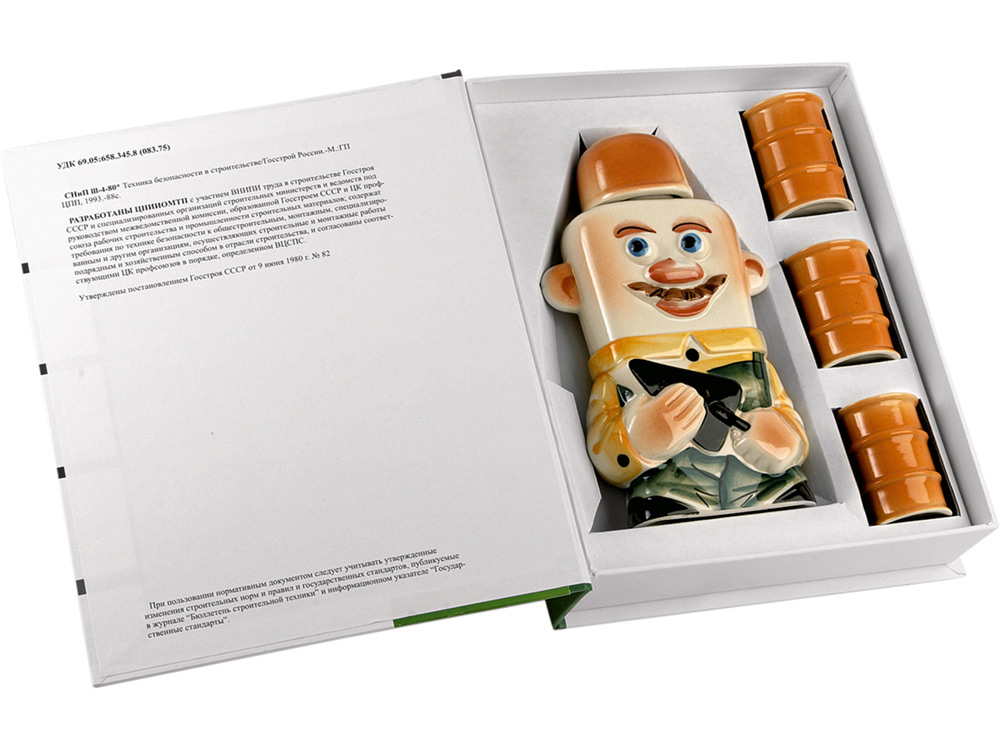 Ищете забавный подарок для строителя? Он у нас есть! Отличный профессиональный сувенир: книга с секретом. Под обложкой «Настольной книги строителя» скрыта керамическая бутылка и три стилизованные рюмки.