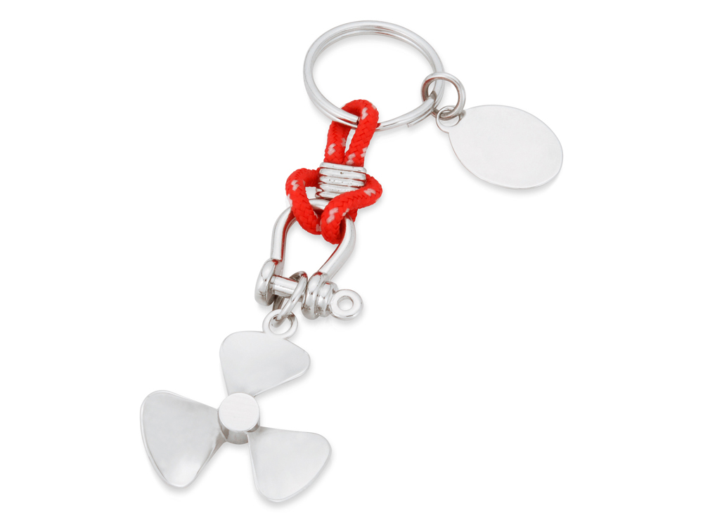 Брелок в форме корабельного винта с шильдом и карабином - тематический сувенир, который подойдет для яхт-клубов, турагенств, специализирующихся на морских круизах, и компаний, занимающихся морскими перевозками.