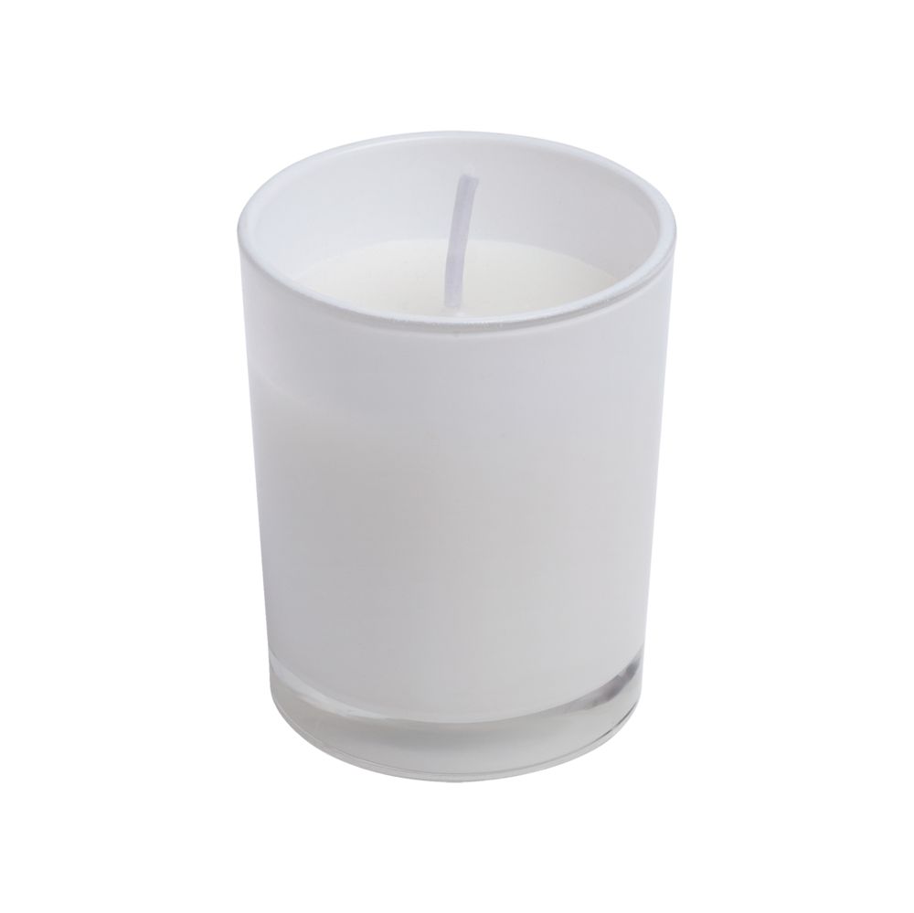 Свеча с легким парфюмерным ароматом в стеклянном подсвечнике.