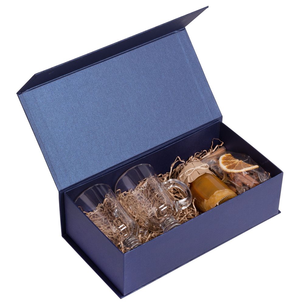 Коробка изготовлена из переплетного картона, кашированного дизайнерской бумагой Curious Ink.