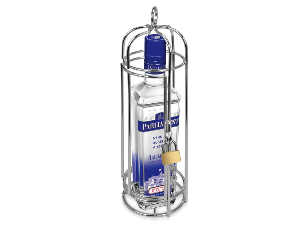 Это настоящая клетка для бутылки. Ставите в нее свой любимый напиток, запираете его на замок, а ключ отдаете друзьям со словами: «Обязуюсь выпить эту бутылку, когда контрольный пакет будет у меня». Можете быть уверены: напиток и «волшебная» клетка очень быстро помогут Вам достичь желаемого.