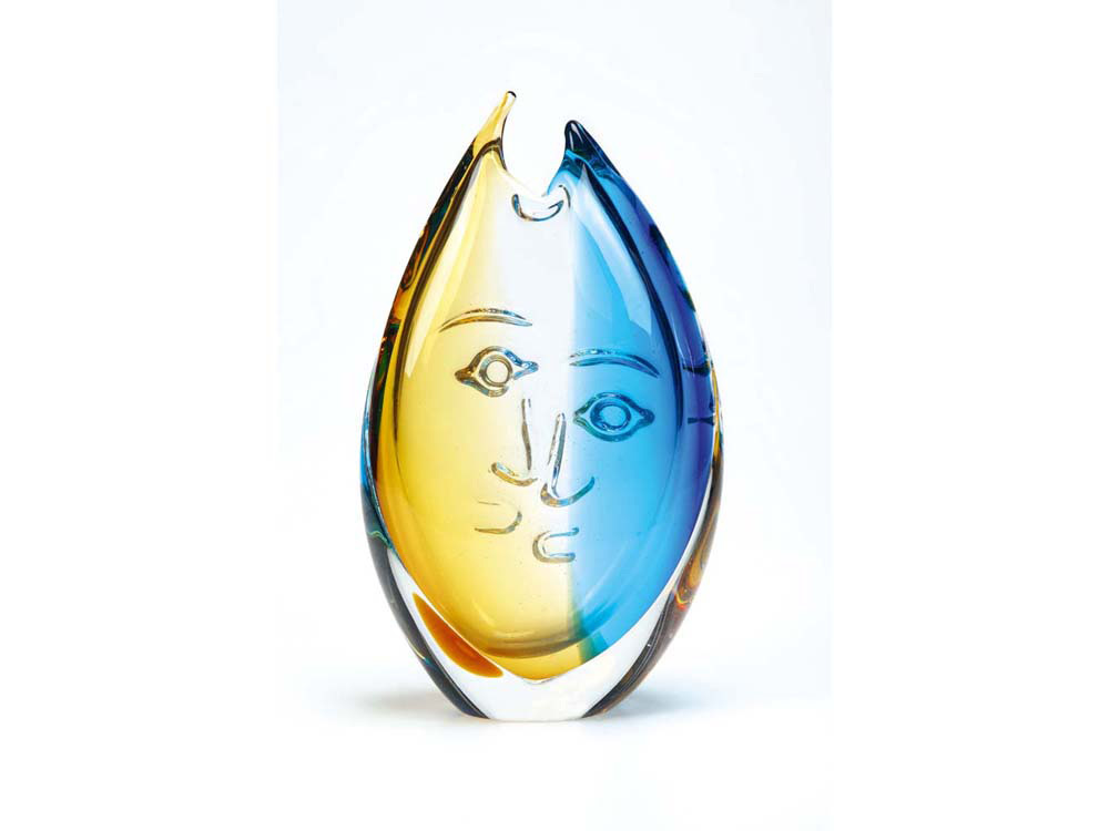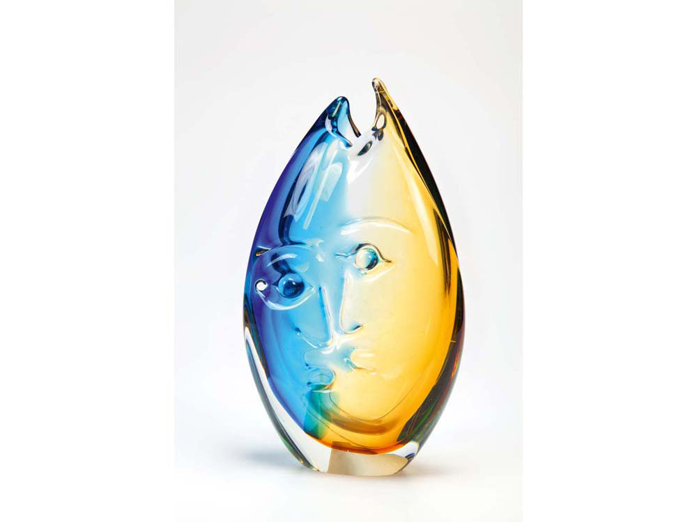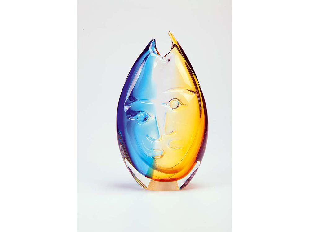 Оригинальная ваза выполнена из муранового стекла нескольких оттенков. Ваза украшена рельефными изображениями человеческих лиц. Обладая интересной каплевидной формой, ваза навевает мысли о гармонии и умиротворении.
