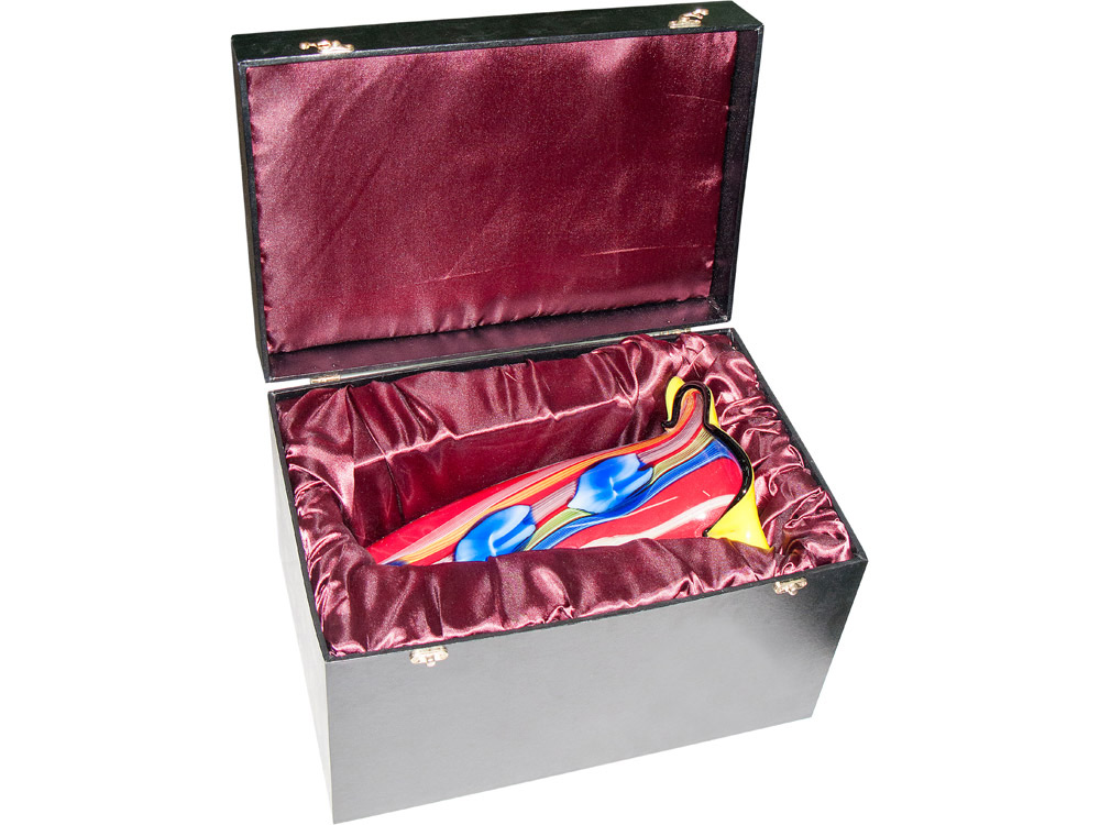 Затейливая форма вазы и яркость красок придадут интерьеру неповторимую новизну и стиль. Ваза выполнена из разноцветного муранового стекла. В комплекте прилагается подарочная коробка. Ваза станет хорошим подарком для бизнес-леди.