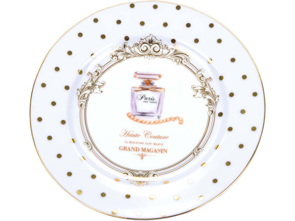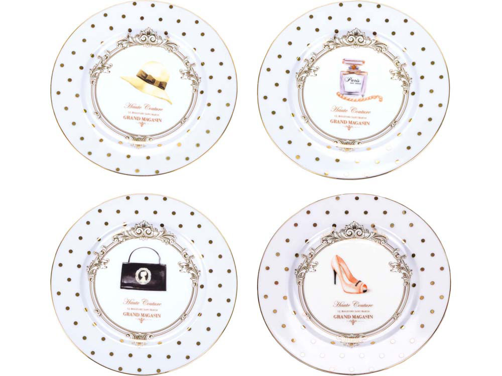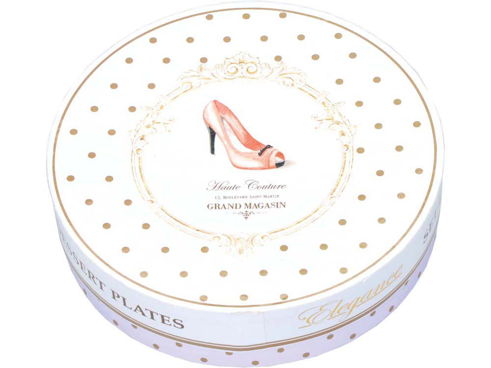 Отличный набор десертных тарелок из тонкого фарфора прекрасно сочетается с кружками «Женский каприз». Отделка набора выполнена в виде ненавязчивого золотистого узора и небольших декоративных изображений.
