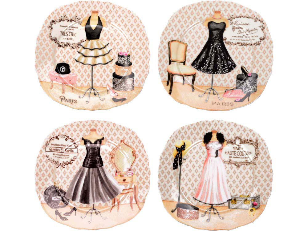 Замечательный подарок для женщин на любое торжество. Набор из 4-х фарфоровых десертных тарелок «Высокая мода» обладает оригинальным дизайном и приятным цветовым оформлением. В комплекте прилагается подарочная коробка.