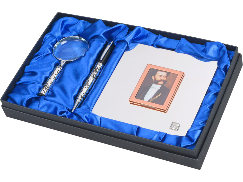Здесь все посвящено Штраусу и его музыке, Лучшие вальсы собраны на CD, который находится в холдере. Помимо этого в набор входят шариковая ручка и лупа, на которых также нанесен музыкальный отрывок.