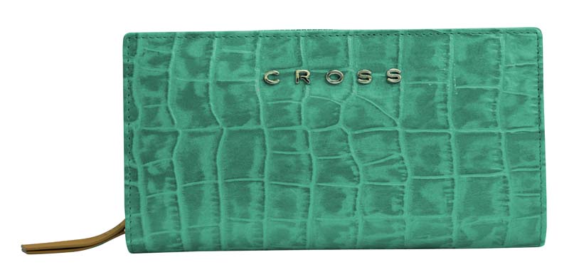 Клатч-кошелёк Cross Bebe Coco, кожа наппа фактурная, цвет зелёный/рыжий, 18 х 10 х 3 см