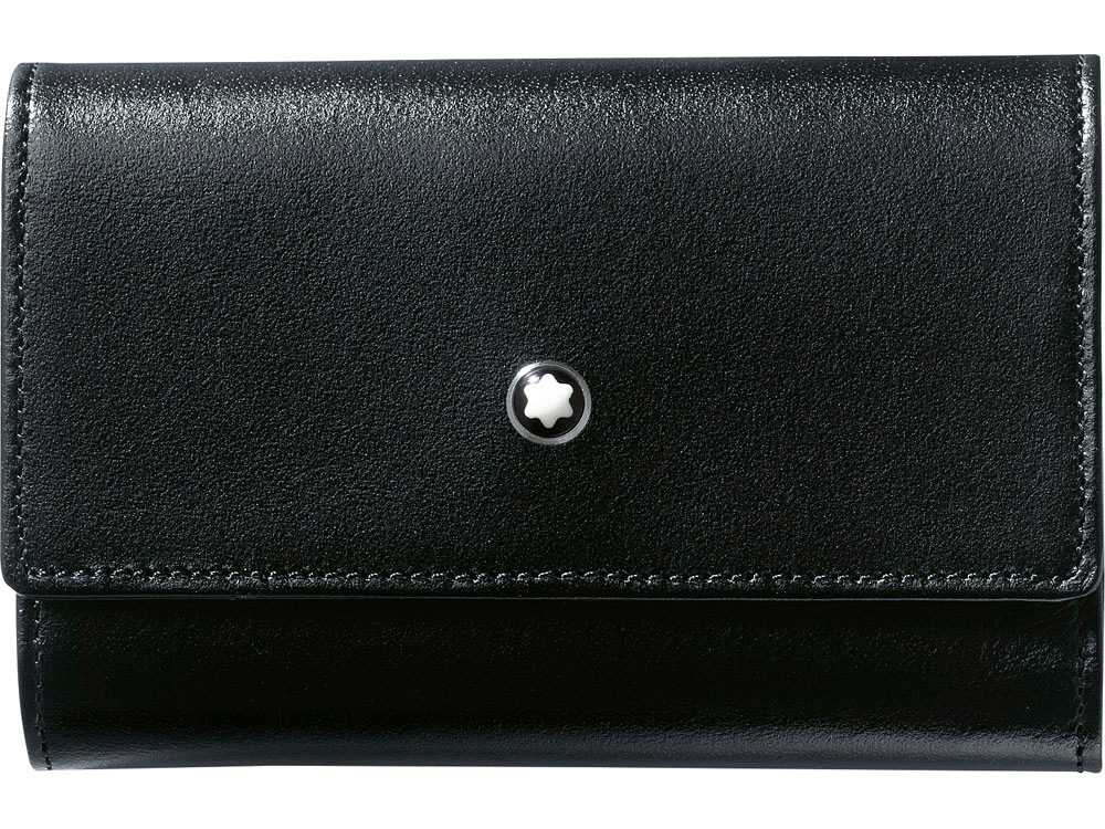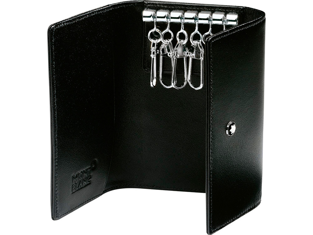 Ключница Монблан на 6 ключей, изготовленная из черной южно-германской зернистой яловичной кожи, подкладка из черного жаккарда, фурнитура из металла с палладиевым напылением.