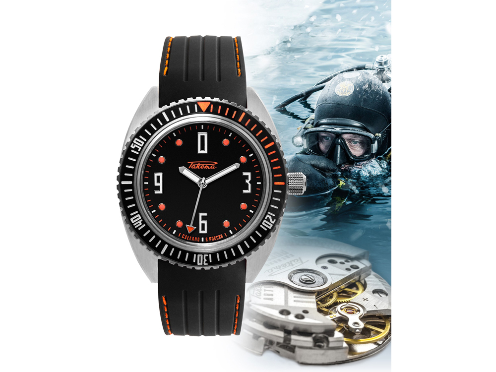 По техническим характеристикам “Амфибия” отвечает всем параметрам: корпус из нержавеющей стали, сапфировое стекло, глубина погружения — 400 метров. Завинчивающаяся заводная головка имеет боковую защиту и резьбу, чтобы ее можно было использовать в перчатках даже во время погружения.