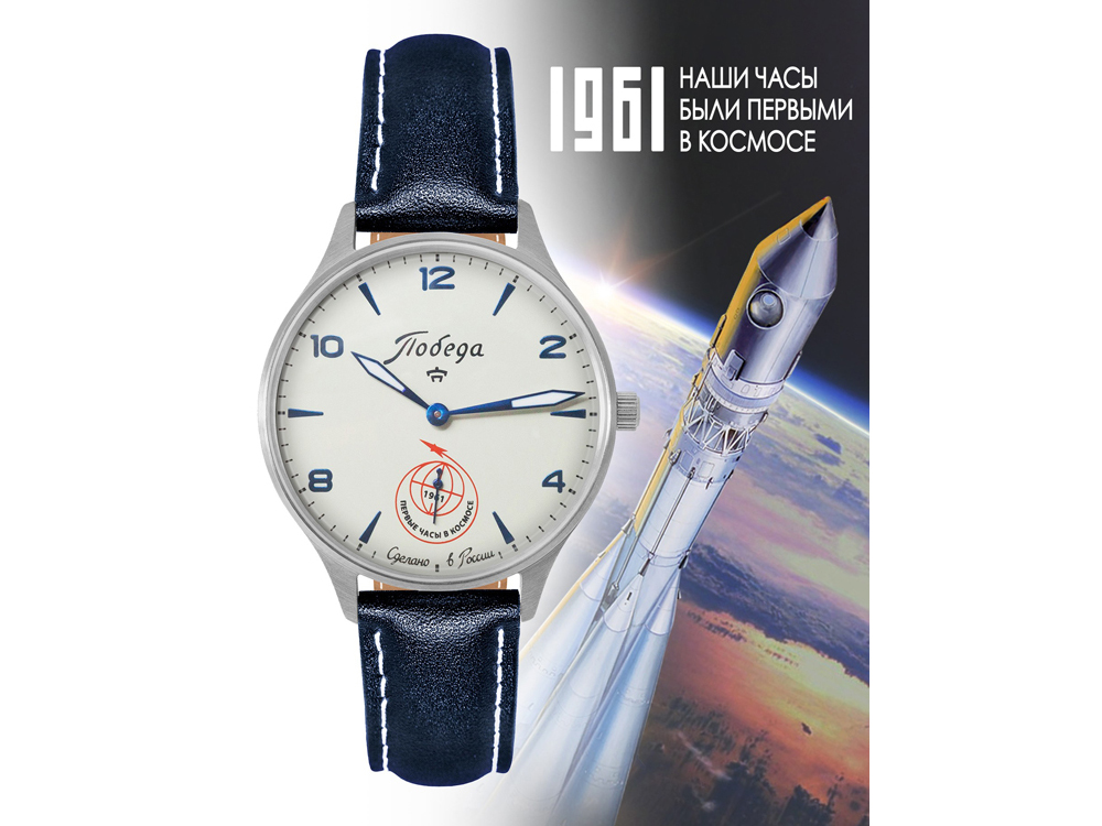 12 апреля 1961 года Юрий Гагарин стал первым человеком, побывавшим в космосе. Его часы “Победа” находятся в Музее Космонавтики на ВДНХ в Москве. В связи с этим грандиозным историческим событием завод выпустил новую коллекцию часов: “Победа - Первые в космосе”.