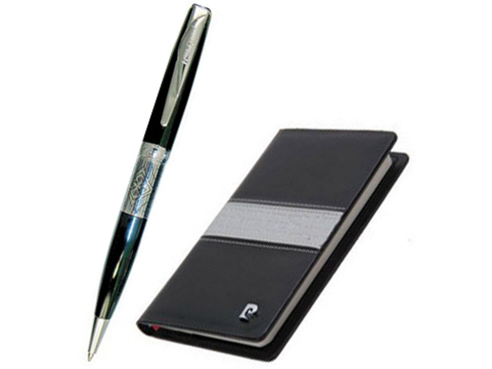 Практичный подарок для руководителей и ключевых клиентов. В набор входит изящная шариковая ручка и небольшая записная книжка. Набор выполнен в классической цветовой гамме. В комплекте прилагается футляр.