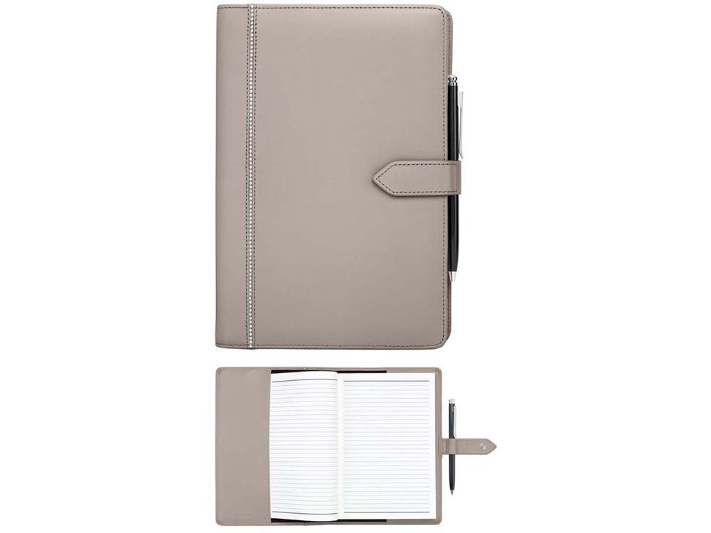 Планируйте свое время с прекрасным авторским органайзером Note Book от Swarovski, сделанным из кожи бежевого цвета и украшенным линией кристаллов. Это экстравагантное изделие идет в комплекте с соответствующей глянцевой черной ручкой и блоком для заметок, изготовленным из бумаги премиум-качества.