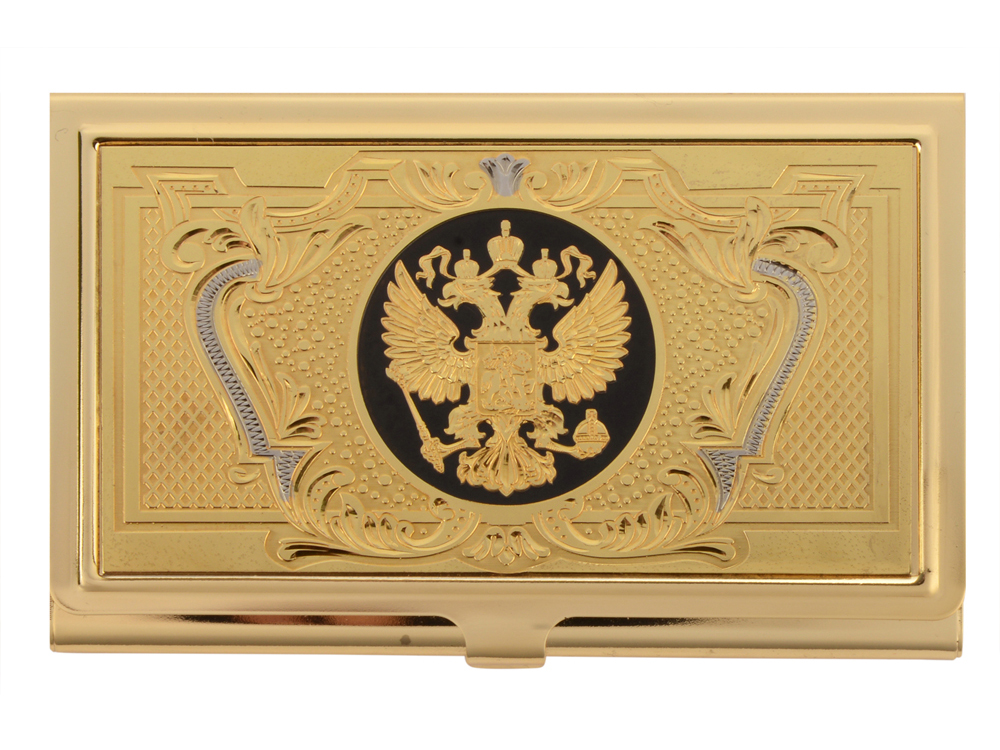 Отличный подарочный набор для руководителей, топ-менеджеров и ключевых клиентов. В набор входит визитница, шариковая ручка и небольшой подарочный футляр. Позолоченная визитница задекорирована изображением российского герба.