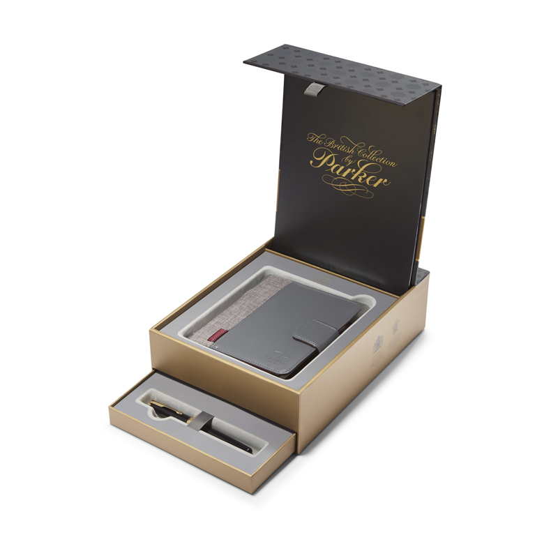 Подарочный набор Parker: Перьевая ручка Parker Sonnet Laque Black GT c блокнотом и органайзером