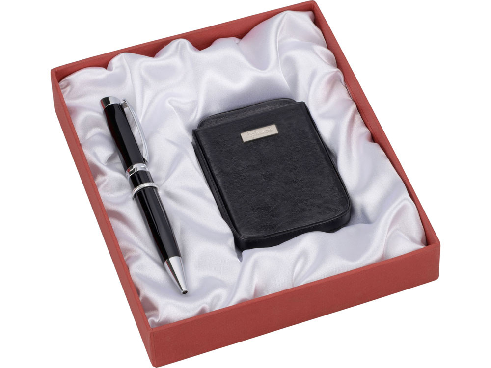 Отличный подарочный набор для успешных мужчин. В комплекте небольшая визитница, выполненная из натуральной кожи, и металлическая шариковая ручка с поворотным механизмом. Набор упакован в фирменную коробку.